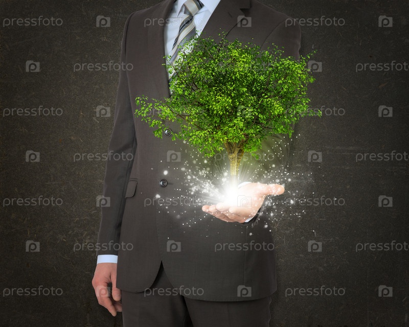 Бизнесмен с волшебным деревом в руке
