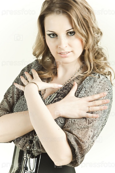 Портрет девушки со скрещенными на груди руками