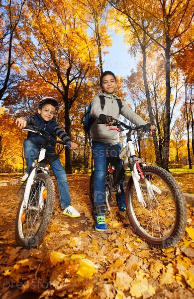 Мальчики на велосипедах в парке