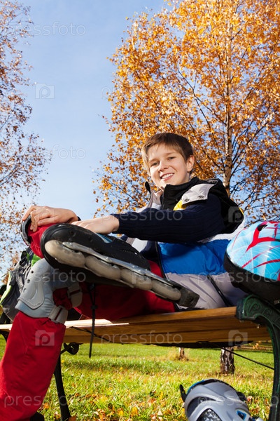 Мальчик на роликах в парке