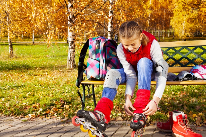 Девочка на роликах в парке