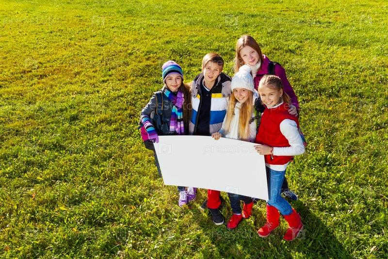 Дети с баннером в парке