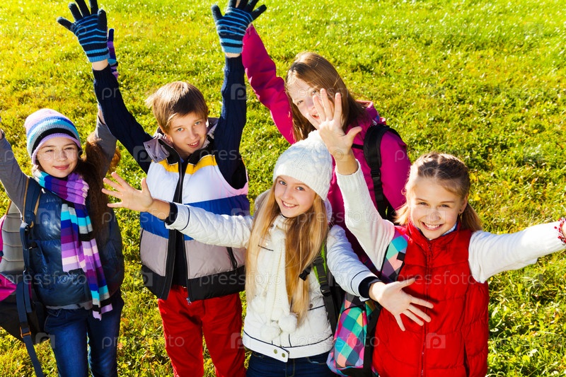 Школьники на лужайке в парке