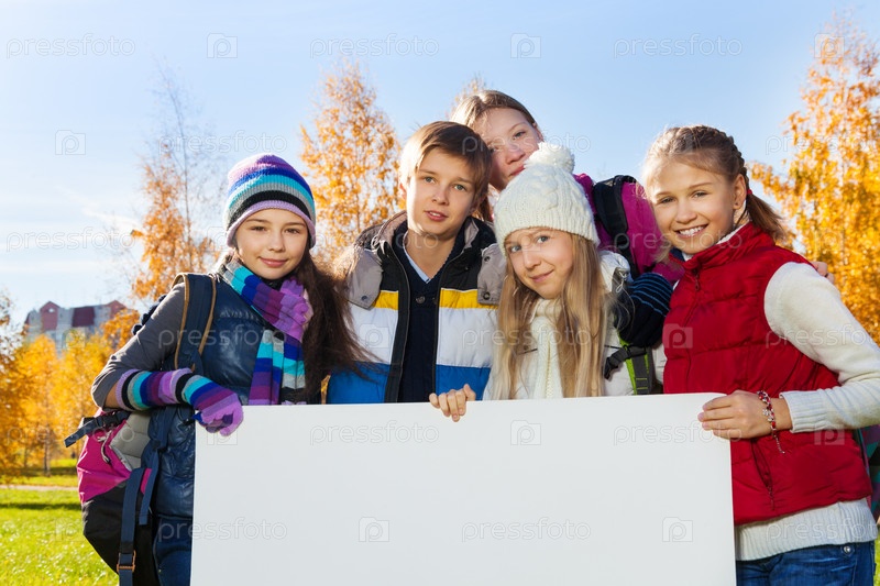 Дети с баннером в парке