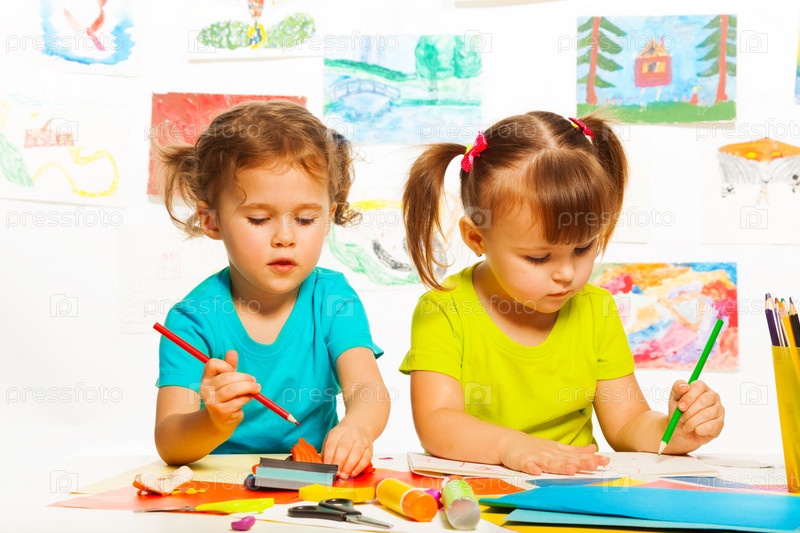 Маленькие девочки рисуют