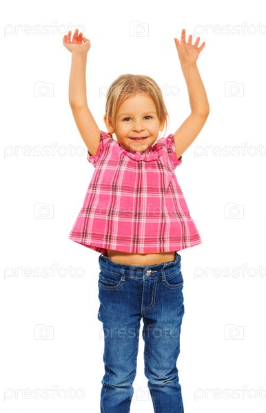 Счастливая девочка на белом фоне