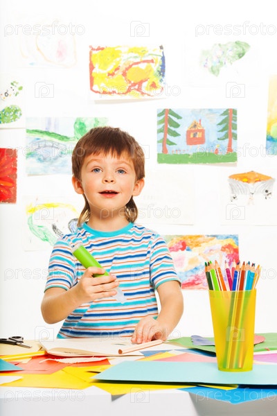 Мальчик делает аппликацию