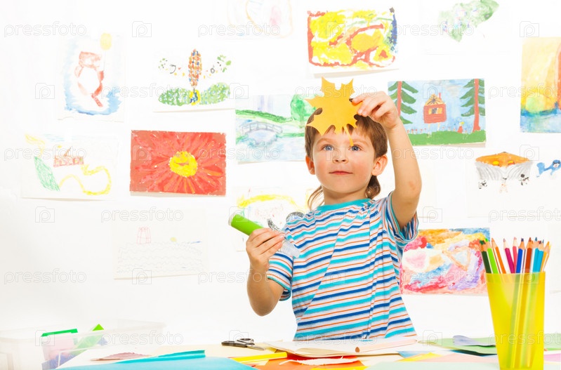 Мальчик делает аппликацию