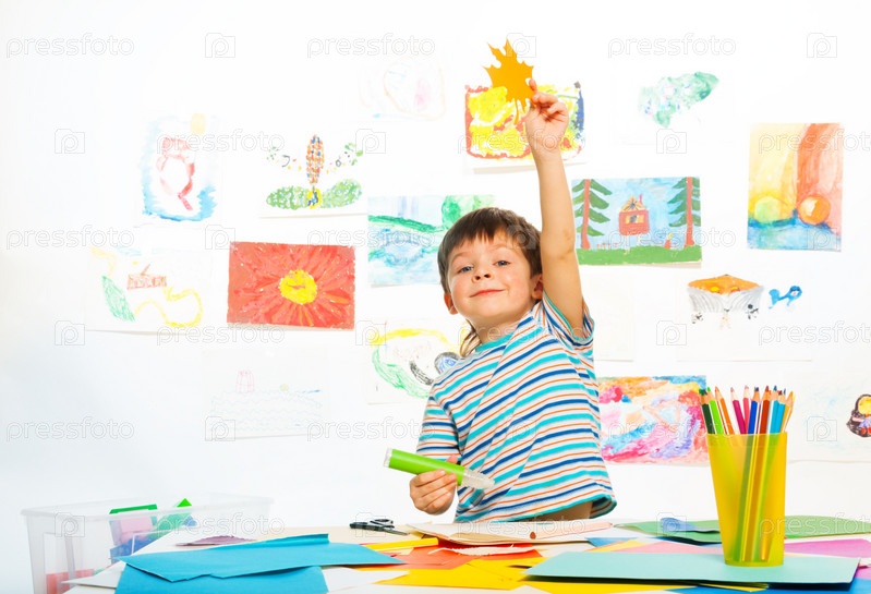 Мальчик делает аппликацию