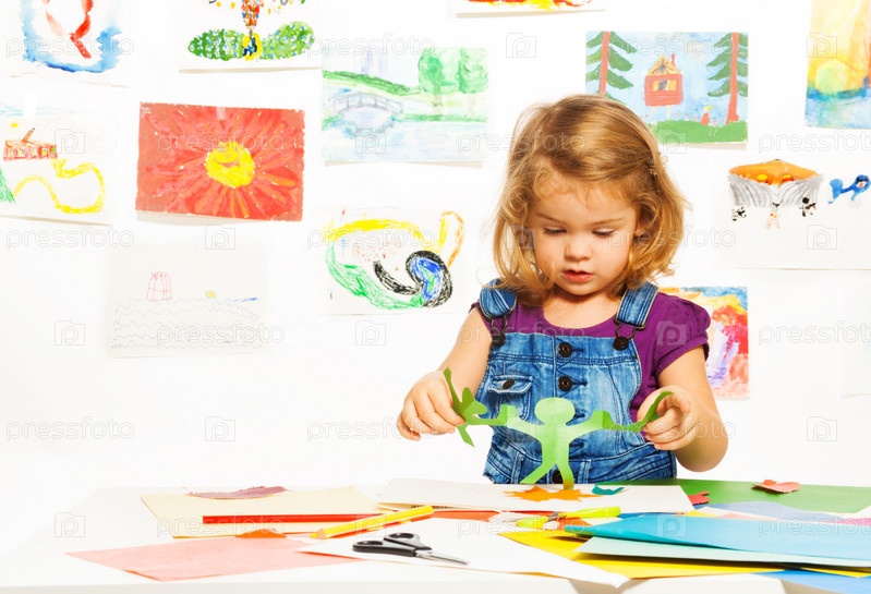 Девочка делает аппликацию