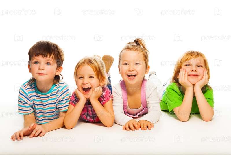 Группа маленьких детей на белом фоне