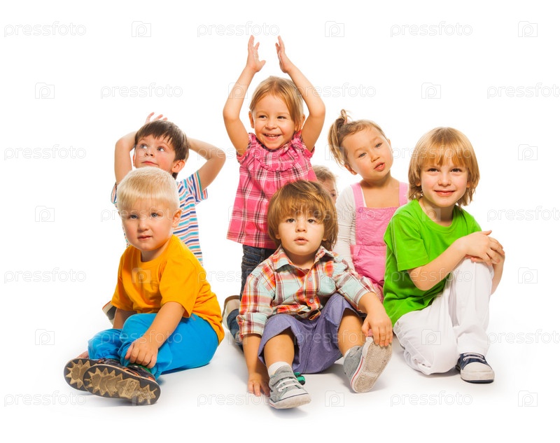 Группа маленьких детей на белом фоне