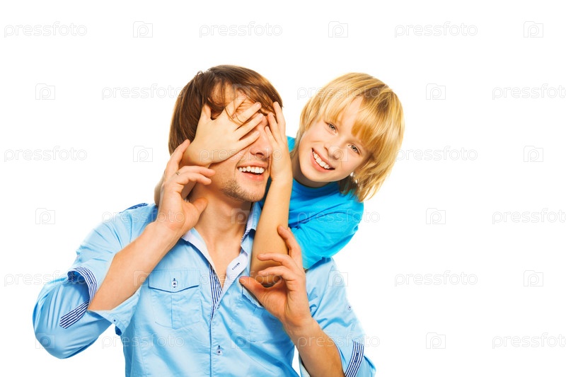 Маленький мальчик с отцом на белом фоне