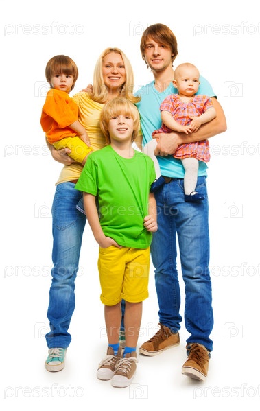 Большая семья на белом фоне