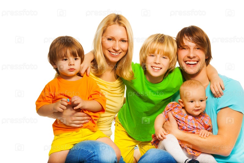 Большая семья на белом фоне