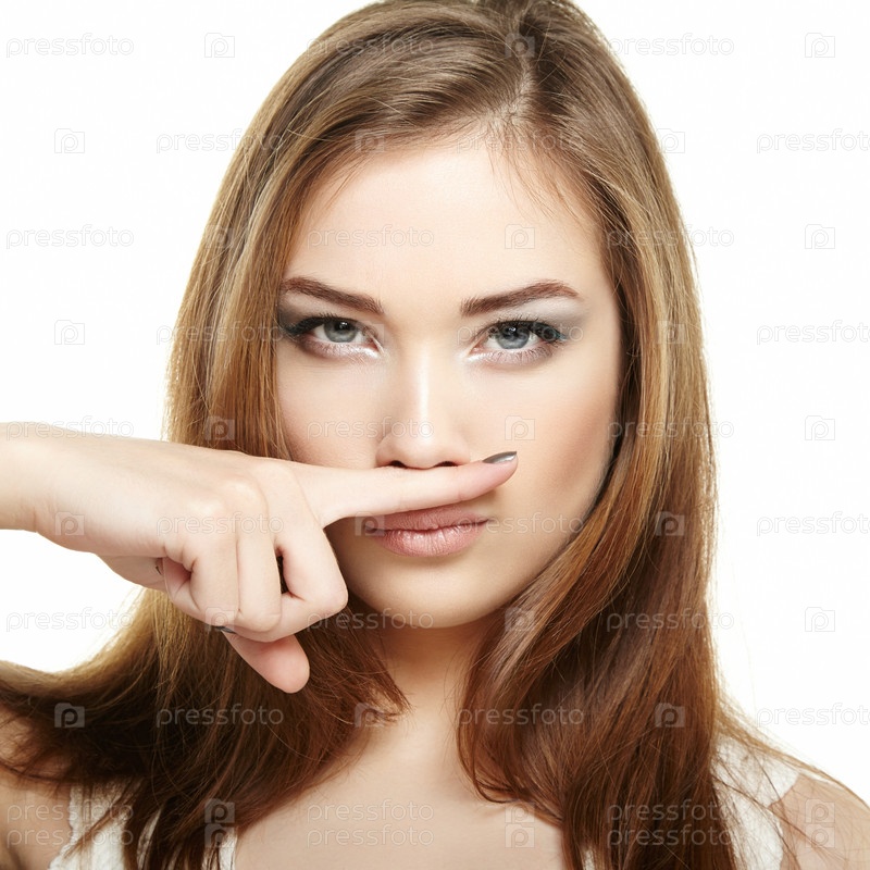 Красивая молодая женщина на белом фоне