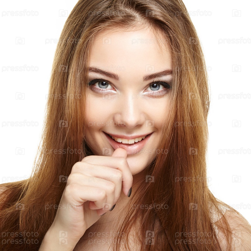 Красивая молодая женщина на белом фоне
