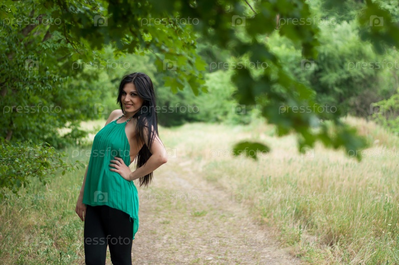 Красивая девушка позирует на свежем воздухе