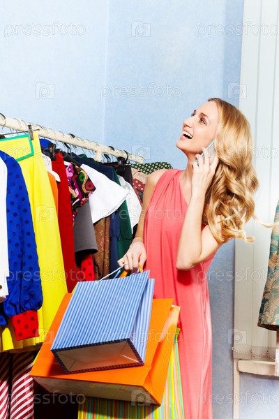 Женщина выбирает одежду в торговом центре