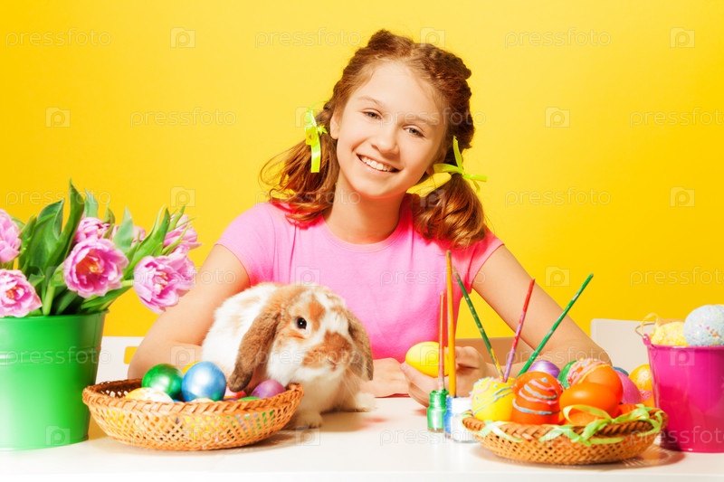 Улыбающаяся девочка с пасхальными яйцами