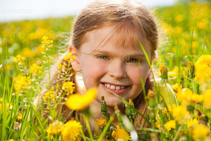Улыбающаяся девочка в одуванчиках