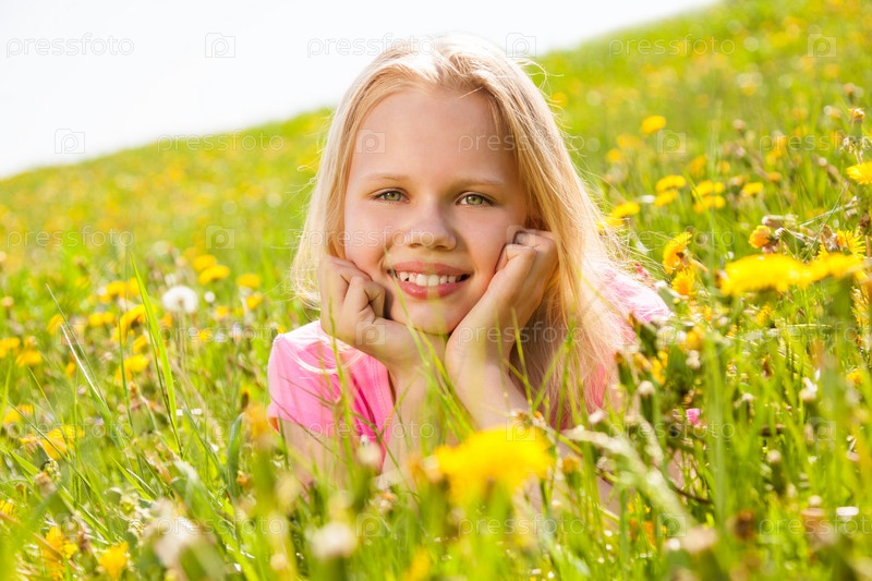 Красивая девочка на цветущей поляне