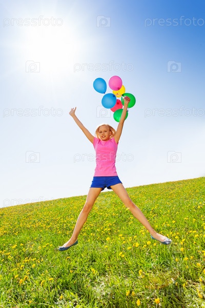 Девочка с воздушными шарами на поляне