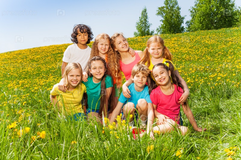 Дети сидят на траве