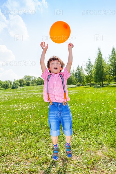 Забавный маленький мальчик с воздушными шарами