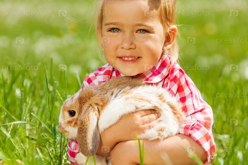 Девочка обнимает кролика