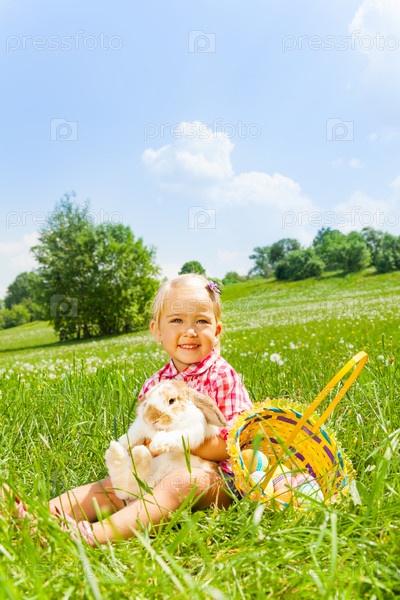 Девочка обнимает кролика