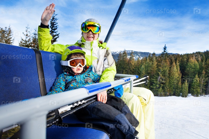 Мама и ребенок на горном подъемнике