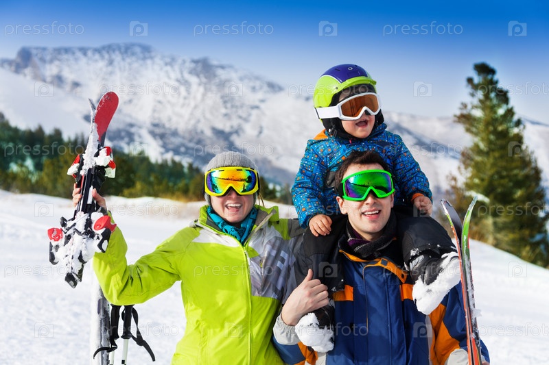 Семья на горнолыжном курорте