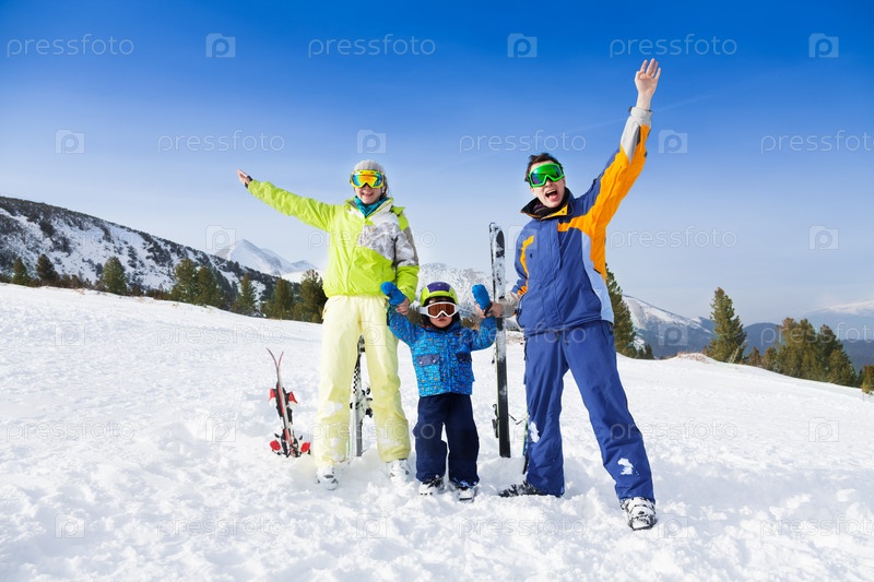 Семья на горнолыжном курорте