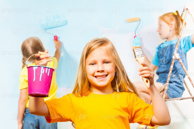 Девочки красят стены
