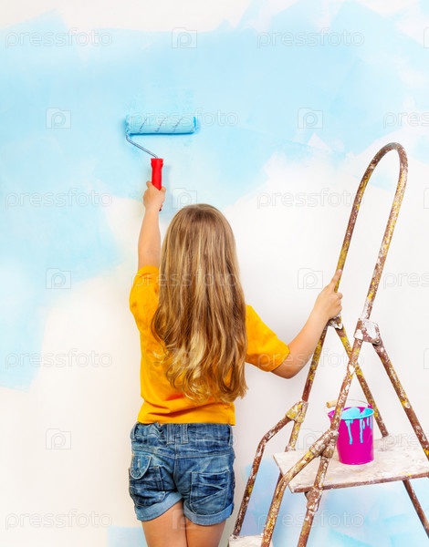 Девочка красит стену