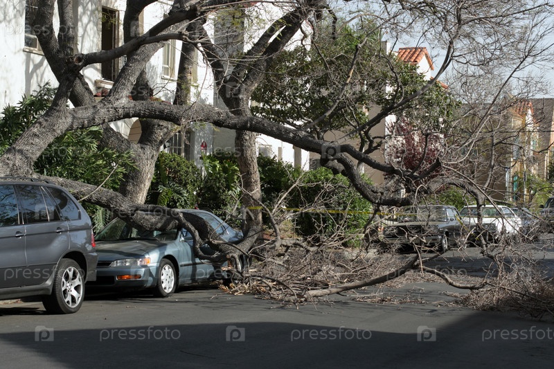 Автомобиль под упавшим деревом