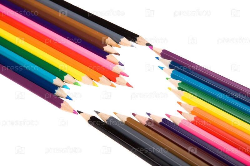 Цветные карандаши образуют сердце на белом фоне