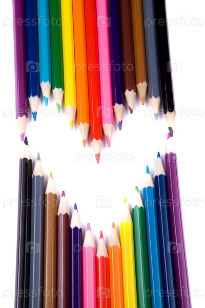 Цветные карандаши образуют сердце на белом фоне