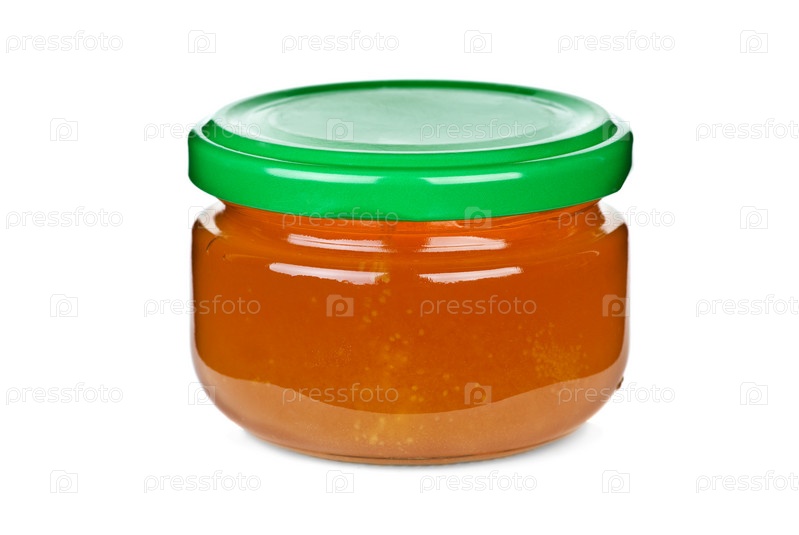 Баночка с медом на белом фоне
