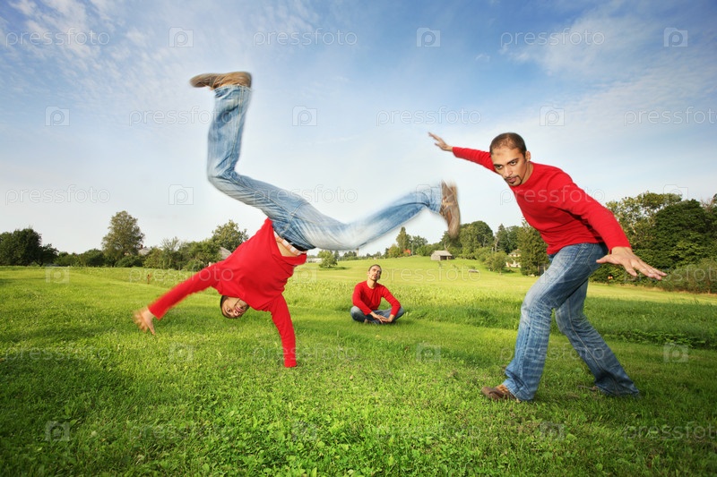 Веселые молодые люди на улице