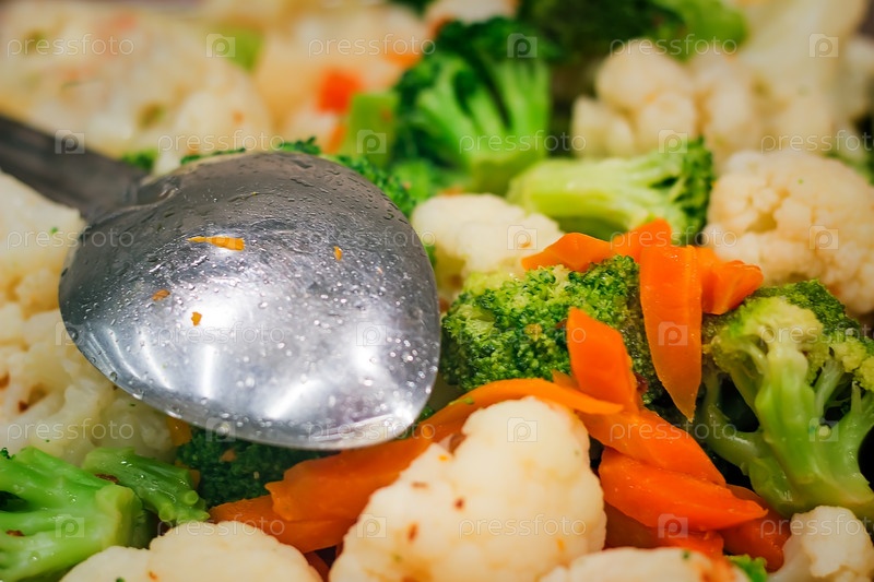 Тушеные овощи: капуста брокколи, морковь, цветная капуста