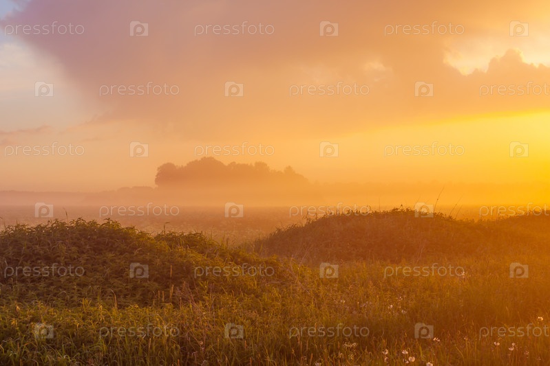 Туманный луг на закате