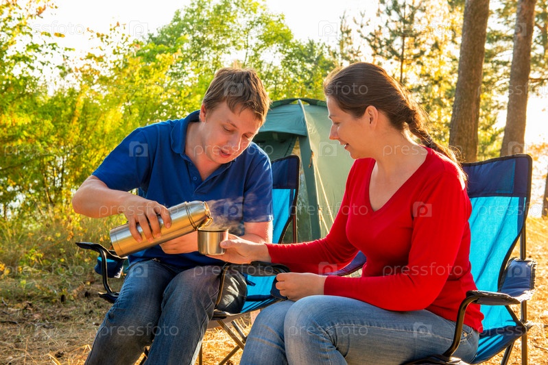 Мужчина наливает чай из термоса