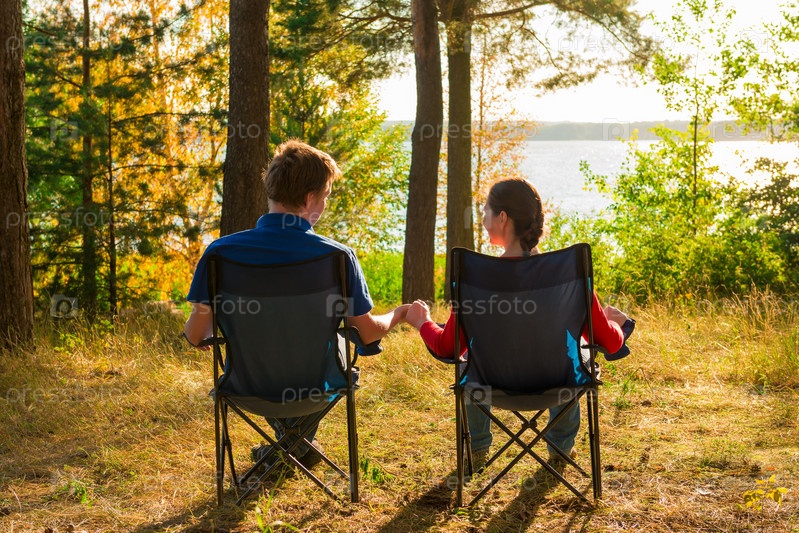 Молодая пара в кемпинге