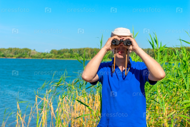 Мужчина с биноклем на природе