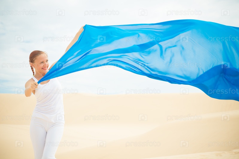 Молодая женщина с летящим шарфом