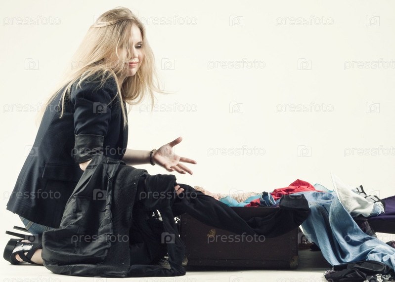 Девушка собирает вещи в чемодан