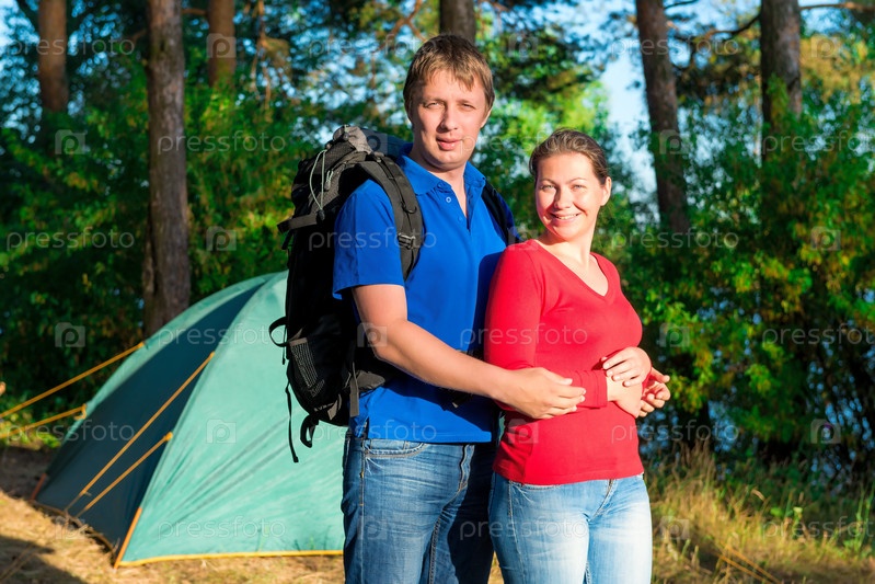 Красивая пара в кемпинге