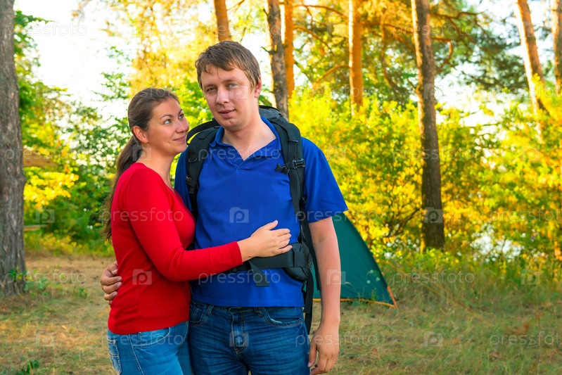 Пара отдыхает в кемпинге